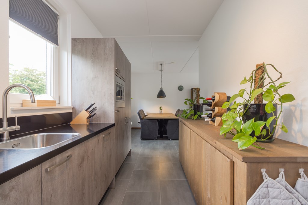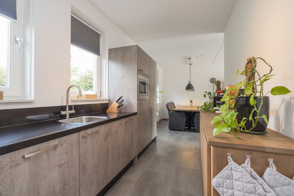 Entree, de hal met de meterkast (8 groepen), de garderobe en de toiletruimte met een staand toilet en een wastafelmeubel. Een gezellige en lichte woonkamer met een fraaie PVC-vloer die voorzien is van vloerverwarming, aan de voorzijde zijn er openslaande deuren naar de voortuin. De verrassend ruime keuken is gelegen aan de achterzijde en is voorzien van diverse inbouwapparatuur zoals koelkast, een vriezer, een combimagnetron, en close-in-boiler voor kokend water en een 6-pits gasfornuis met een oven en een afzuigkap (recirculatie). Vanuit de keuken komt u in de berging met de opstelling van de cv-ketel (Intergas 2016), de ventilatie-unit en de aansluitingen voor de wasmachine en de droger. De berging heeft een deur die naar buiten opendraait en dus geen beslag legt op ruimte in de berging.