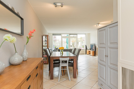 - de woonkamer is aan de achterzijde over de gehele breedte uitgebouwd;
