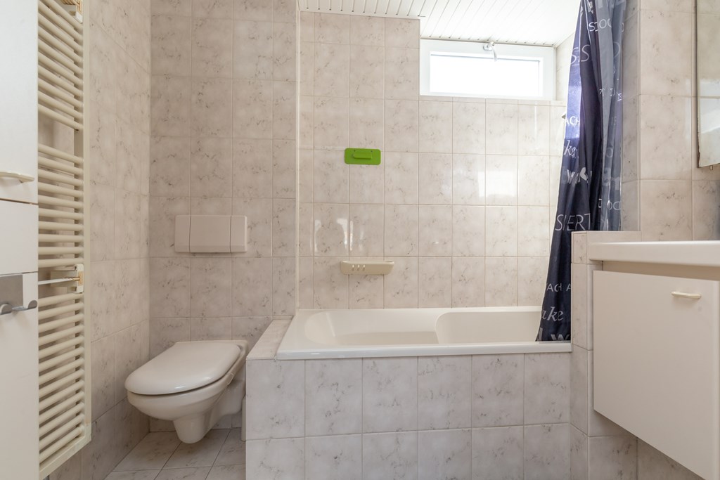 Overloop, aan de voorzijde de eerste slaapkamer met een laminaatvloer en een rolluik aan de buitenzijde. De badkamer is volledig betegeld en heeft een bad, een wandcloset, een handdoekradiator en ingebouwde verlichting. Aan de achterzijde een ruime slaapkamer met een kastenwand met schuifpanelen en een toegangsdeur naar het dakterras met een houten balustrade. De derde volwaardige slaapkamer is eveneens gelegen aan de achterzijde en heeft ingebouwde kastruimte.