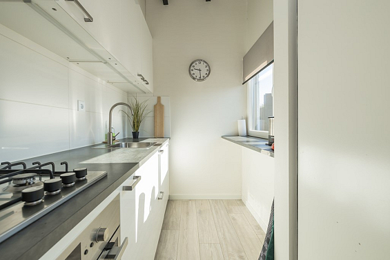 Entree, een sfeervolle en aangenaam lichte woonkamer met een gezellige houtkachel en een schuifdeur naar de tuin. De fraaie en in lichte kleur uitgevoerde keuken is voorzien van diverse inbouwapparatuur zoals een 4-pits gaskookplaat, een afzuigkap, een combimagnetron, een koelkast met vriesvak en een vaatwasser. De volledig en in lichte kleur betegelde badkamer heeft een wastafelmeubel, een toilet, een inloopdouche en de aansluitingen voor de wasapparatuur. Via een dakraam kan de badkamer prima worden geventileerd. De bungalow heeft twee volwaardige slaapkamers, beide met een smaakvolle laminaatvloer.