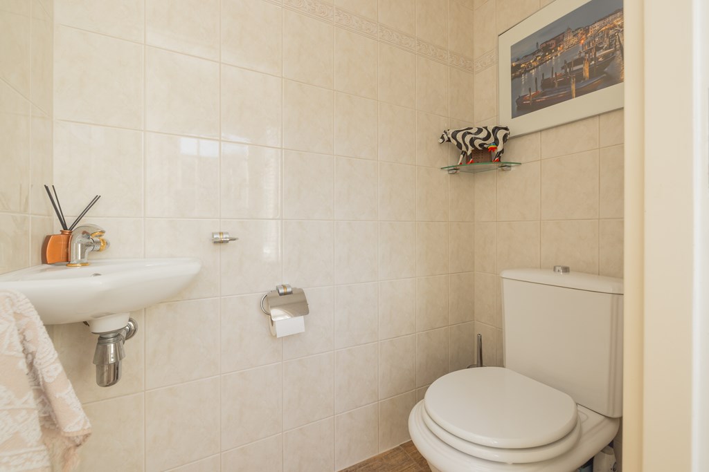 In de tweede hal is de garderobe en keurig weggewerkt in een kast de cv-ketel (Intergas 2010). Via de trap is de eerste verdieping te bereiken en ook hier kijkt u echt uw ogen uit! De eerste slaapkamer heeft aan de voor- en de achterzijde een dakkapel en zowel de kastruimte als het bureau zijn op maat gemaakt, vanuit het dakkapel aan de voorzijde heeft u vrij uitzicht over het voor de woning gelegen veldje. Ook de tweede slaapkamer is een plaatje en ook hier is de kastruimte en het bureau op maat gemaakt, via deze kamer is de bergruimte in de nok bereikbaar. Tenslotte de derde en aangenaam lichte slaapkamer en ik val in herhaling want ook in deze kamer is alles op maat gemaakt. Ook vanuit deze kamer heeft u uitzicht over het naast de woning gelegen veldje.