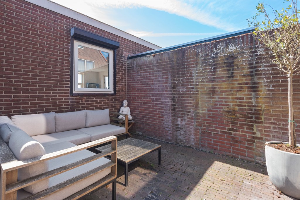 De op het westen gelegen tuin bevindt zich aan de voorzijde van de woning en is volledig bestraat en voorzien van een houten schutting voor de privacy.