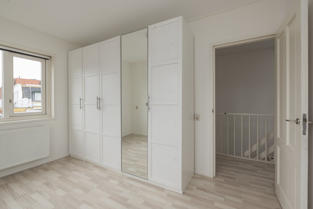 De overloop heeft een groot dakraam en de aansluitingen voor de wasapparatuur. Er zijn op deze verdieping twee ruime slaapkamers en een fraaie badkamer met een wandcloset, een inloopdouche en een wastafel. Via een vlizotrap op de overloop is de meer dan riante bergzolder bereikbaar met de opstelling van de CV-ketel (2025). Met een vaste trap kunt u de zolder bij de woning betrekken, dat levert bijzonder veel extra woonruimte op.