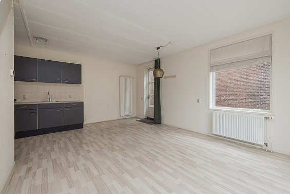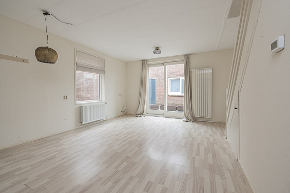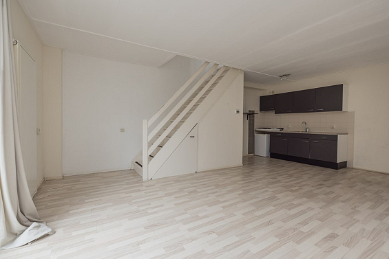 Entree, een aangenaam lichte woonkamer met een keurige moderne open keuken. Er is bergruimte onder de trap en er is een toiletruimte. Aan de achterzijde bereikt u via de schuifpui de ruimte achter de woning. Een gedeelte van deze buitenruimte wordt aan de woning toebedeeld.